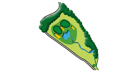 グリーン前に川と池のある打ち下ろしのショートホールです。左右にバンカーが3つ並ぶグリーンは受けていますが、グリーン面の傾斜がきついので要注意です。 また風の方向が変わり影響が読みにくいホールでもあります。美しい景観の中でワンオンを競う名物ホール。
