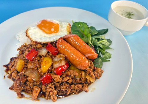 国産牛使用。ステーキと香ばしいガーリックチップが抜群。